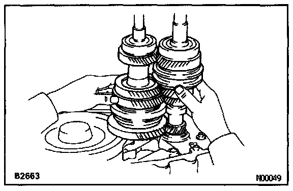 HINT: If it is difficult to install the snap rings, pull up the shafts.