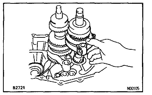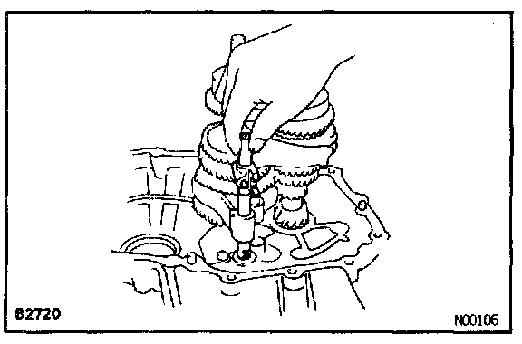 b. Install the No.1 fork shaft into the No.1 shift fork hole.