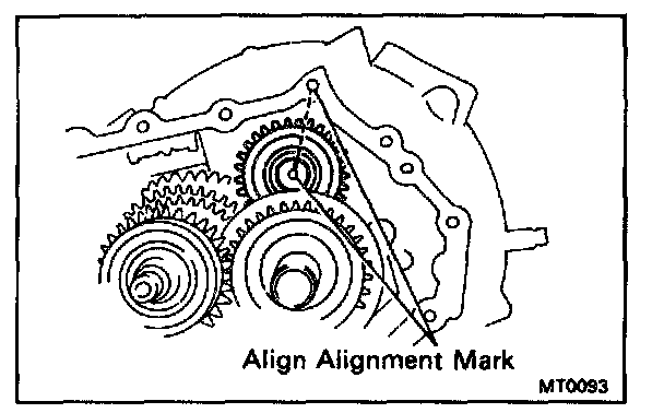 Install the reverse idler gear, thrust washer and shaft, as shown.