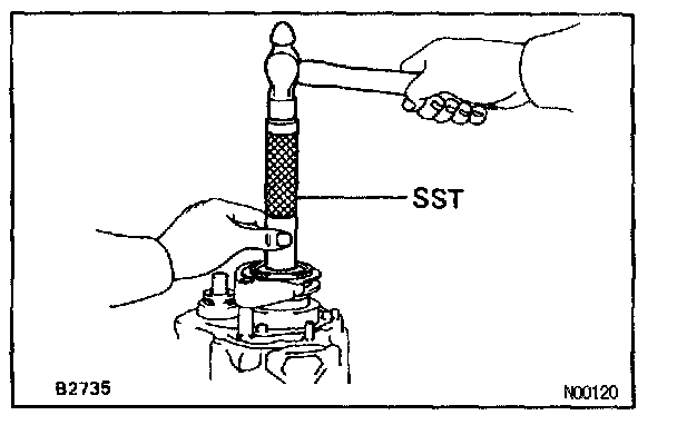 b. Using SST and a hammer, drive in No.3 hub sleeve with shift fork.