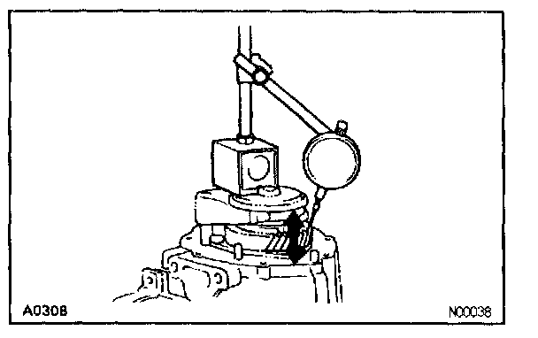 Using a dial indicator, measure the thrust clearance.