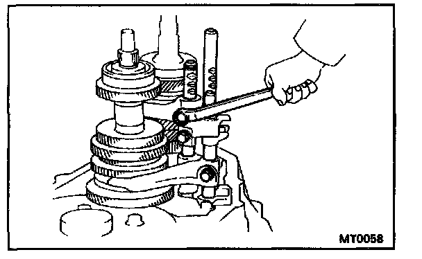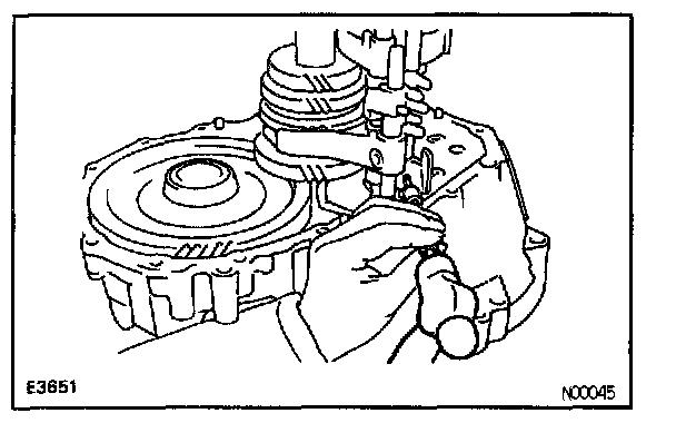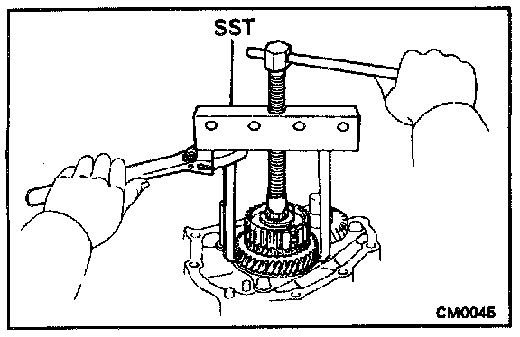 d. Using SST, remove the 5th gear. No.3 hub, synchronizer ring, needle roller bearings and spacer.