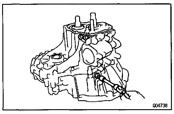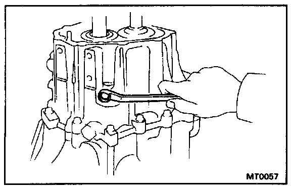 Using a hexagon wrench, remove the 3 plugs and straight screw plug.