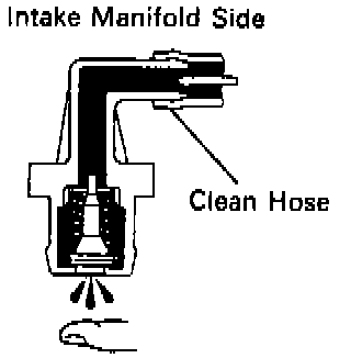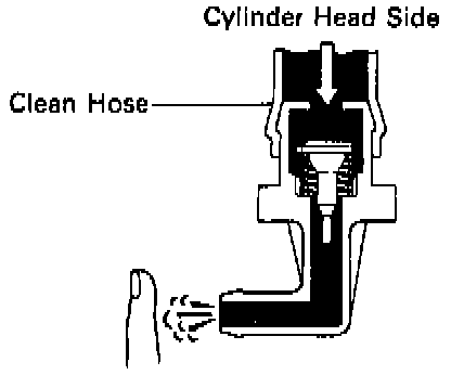 4. Blow air from intake manifold side. Check that air passes through with difficulty. If the PCV valve fails either of the checks, replace it.