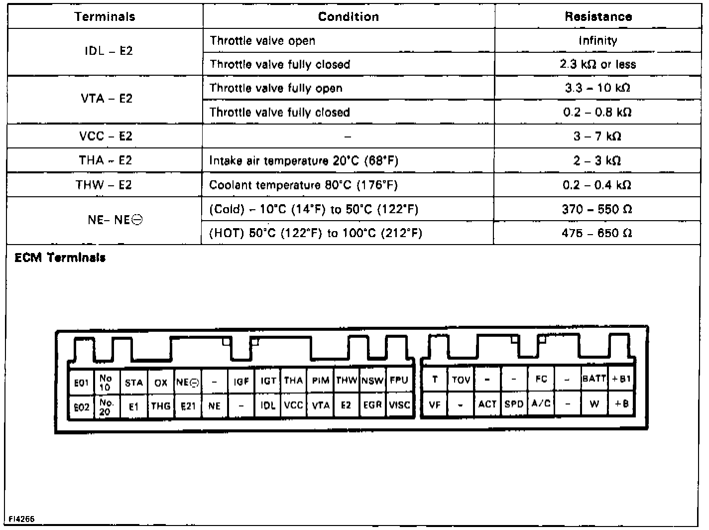ECU Terminal Resistance Values