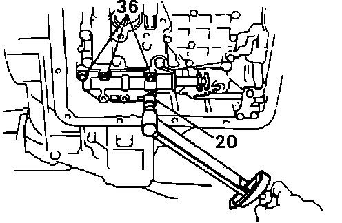 8. Ensure manual lever is in contact with center of roller at tip of detent spring, then install oil tubes.