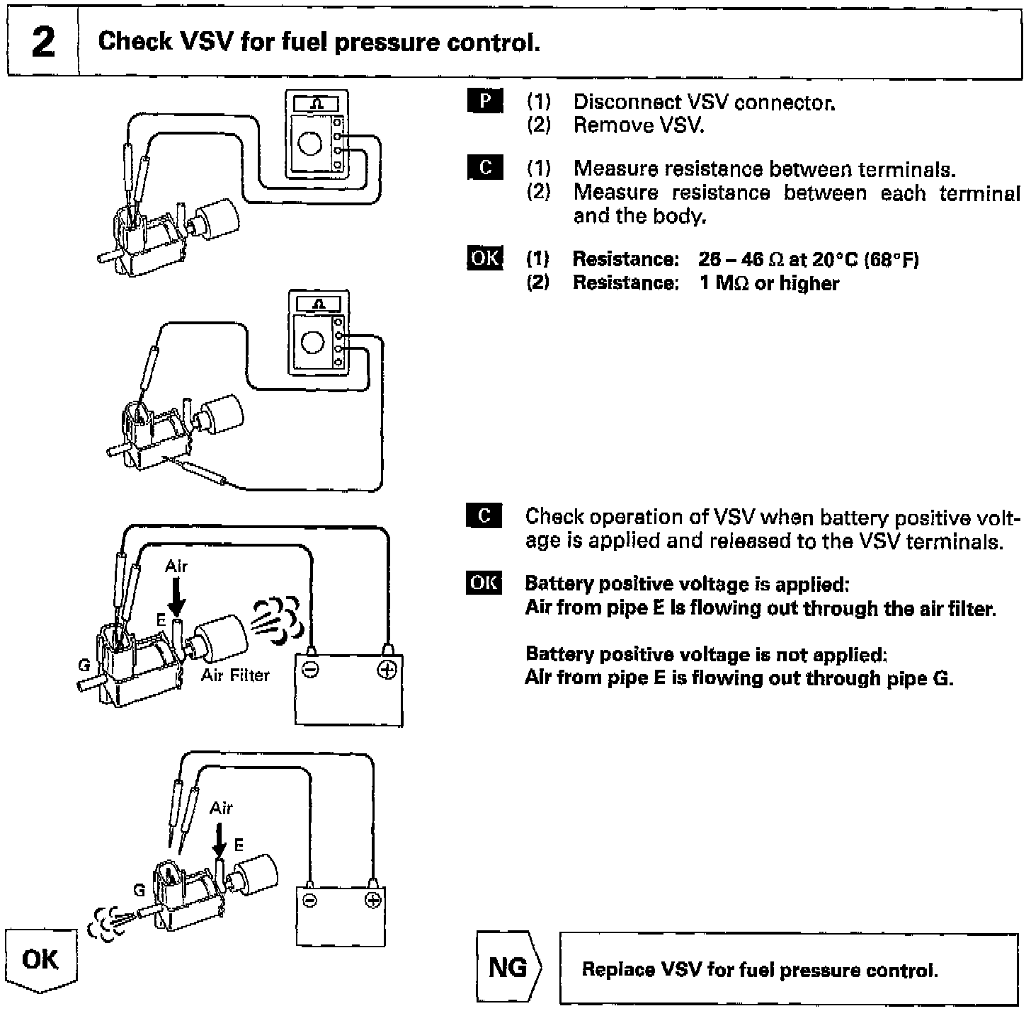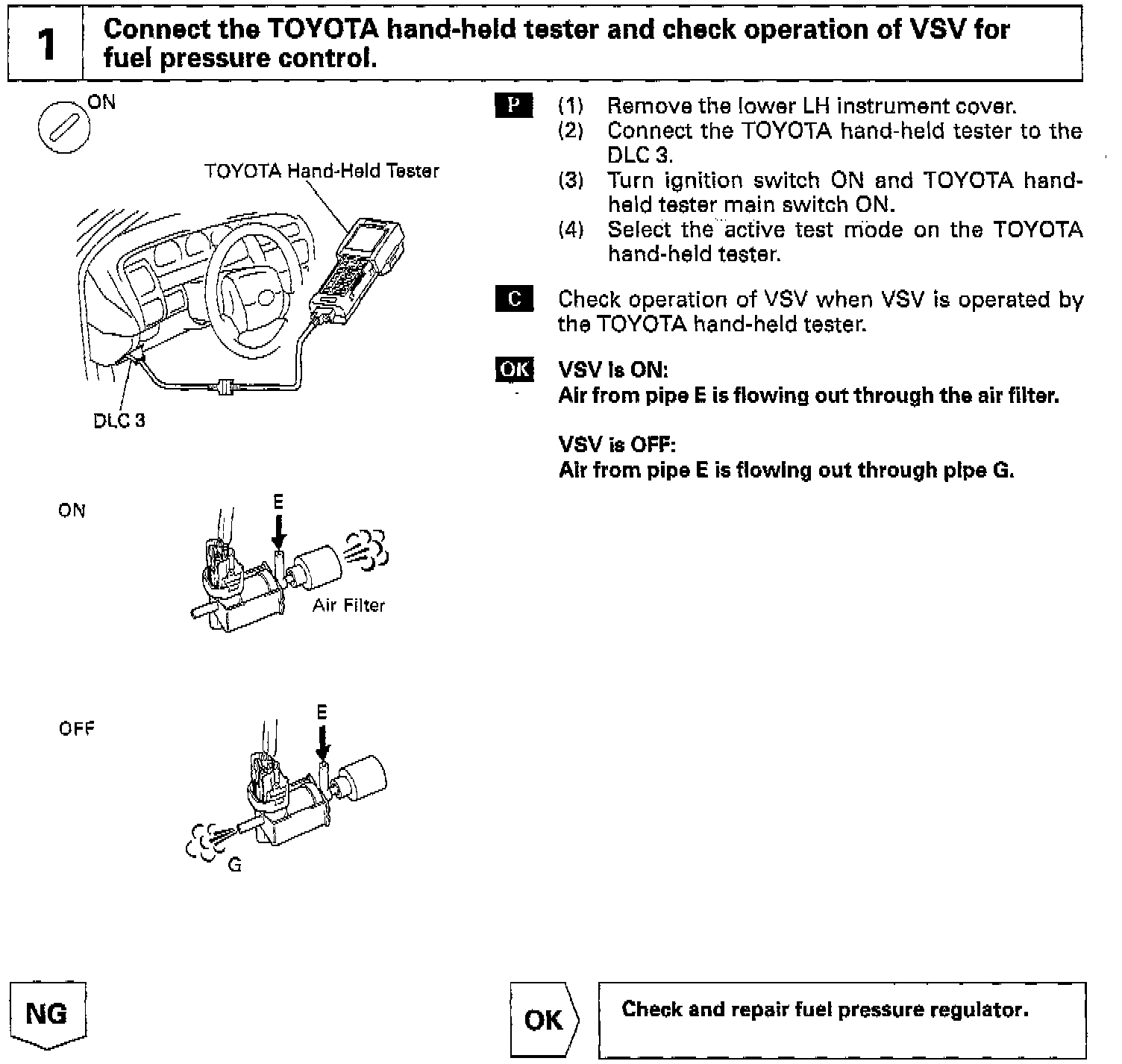 The ECM turns on a VSV (Vacuum Switching Valve) to draw the air into the diaphragm chamber of the pressure regulator if it detects that the temperature of the engine coolant is too high during engine starting.