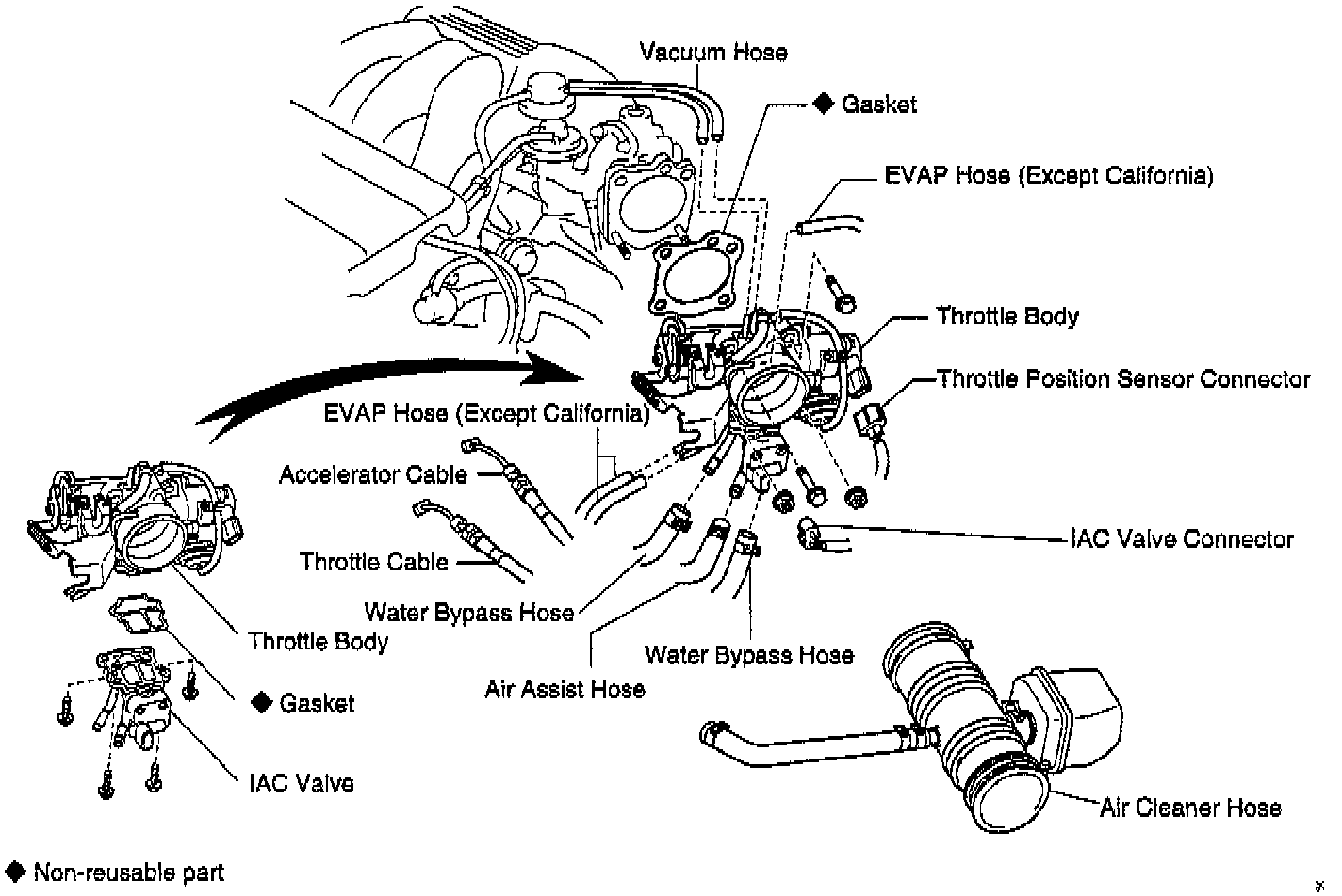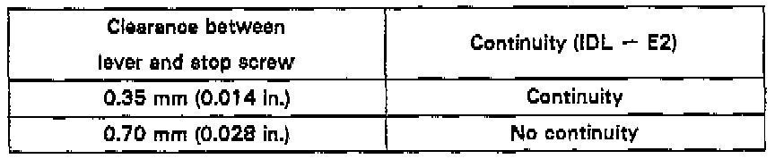 - Insert a 0.54 mm (0.021 in.) thickness gauge, between the throttle stop screw and stop lever.