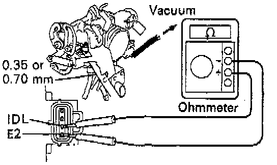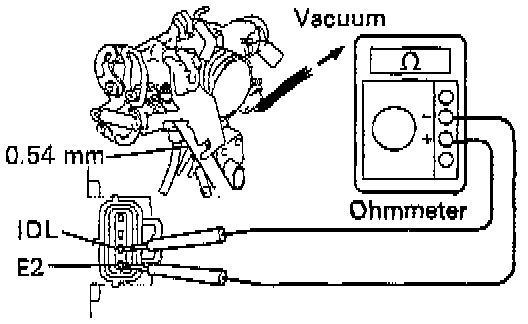 - Connect the test probe of an ohmmeter to the terminals IDL and E2 of the sensor.