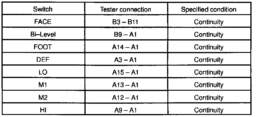 c. Check the continuity exists between terminals while the switch is pressed, as shown in the chart.