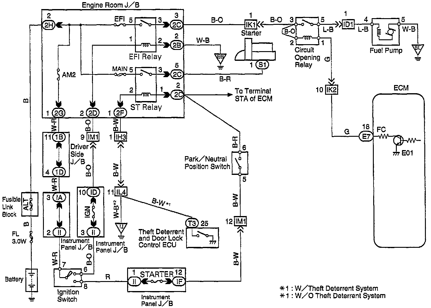 In Fig.1 above, when the engine is cranked, current flows from terminal ST of the ignition switch to the starter relay coil and also current flows to terminal STA of ECM (STA signal).