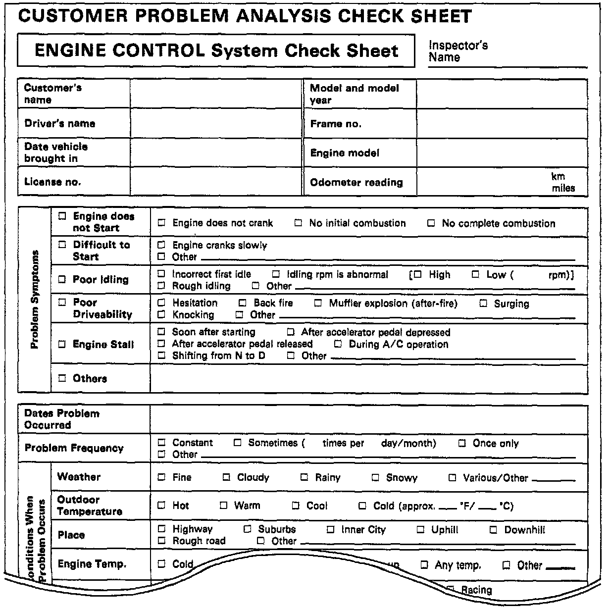 Sample Of The Problem Analysis Check Sheet For Engine Controls: