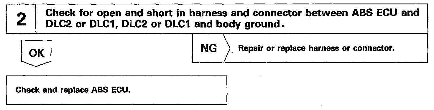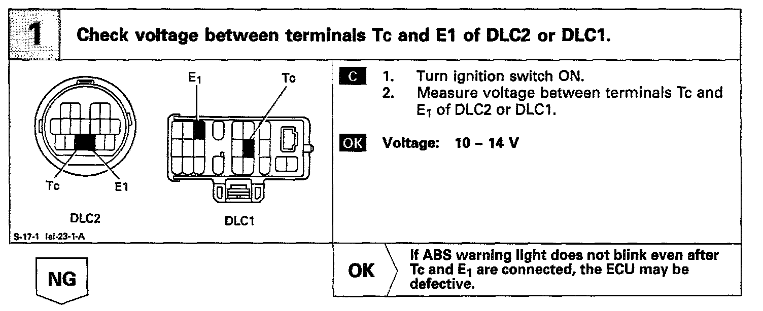 Connecting terminals Tc and E1 of the DLC1 or the DLC2 causes the ECU to display the DTC by flashing the ABS warning light.