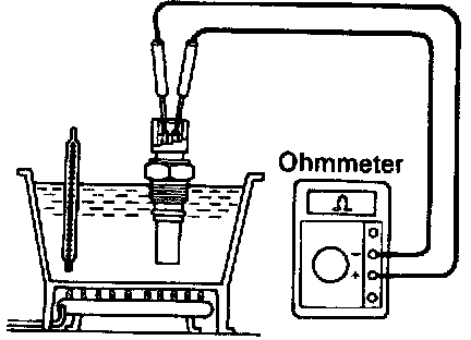 (1) Using an ohmmeter, check that there is continuity between terminals when the coolant temperature is above 93°C (19O°F).