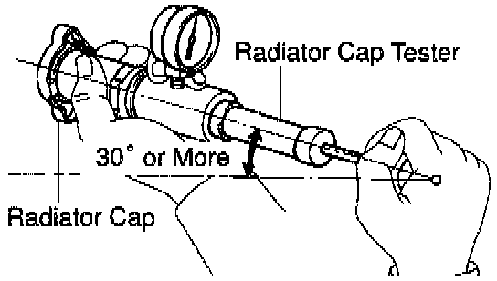 - When performing steps (a) and (b) below, keep the radiator cap tester at an angle of over 30° above the horizontal.