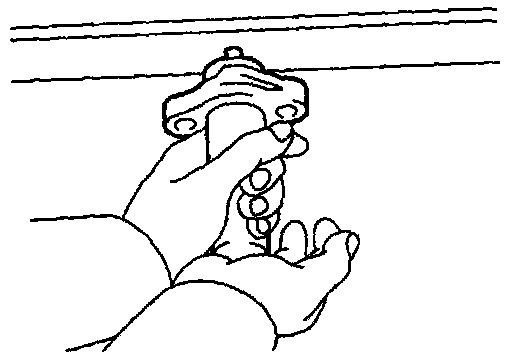 (b) Hold the tensioner with both hands and push the push rod strongly as shown to check that it doesn't move. If the push rod moves, replace the tensioner.