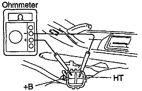 - Using an ohmmeter, measure the resistance between the terminals +B and HT.