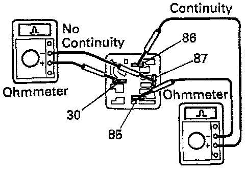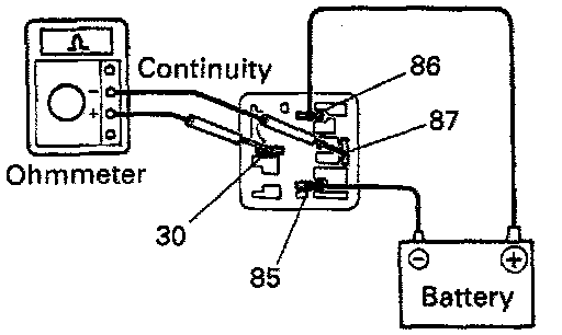 - Using an ohmmeter, check that there is continuity between terminals 87 and 30.
