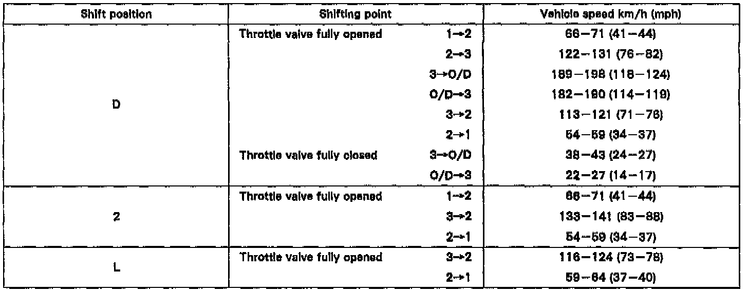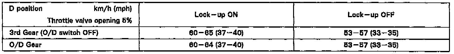 (4) Shift-up to O/D will not occur when the engine coolant temp. is below 60°C (140°F) and the vehicle speed is below 70 km/h (43 mph).