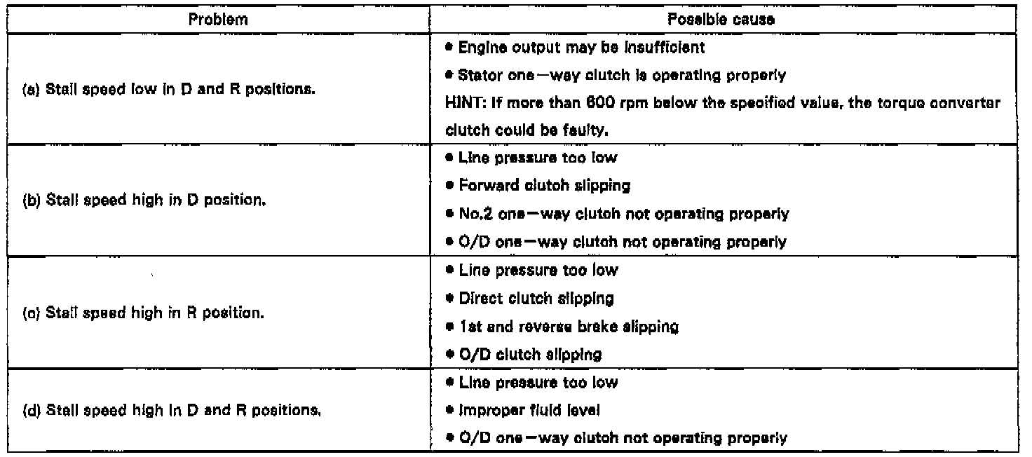 STALL TESTThe object of this test is to check the overall performance of the transaxle and engine by measuring the stall speeds in the D and R positions.