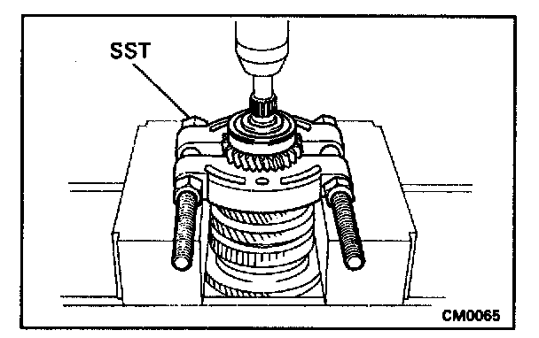 b. Using SST and a press, remove the 3rd driven gear and 2nd gear.