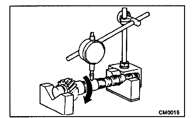 b. Using a dial indicator, check the shaft runout.