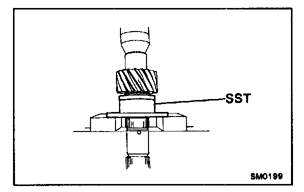 Using SST and a press, install the rear bearing.