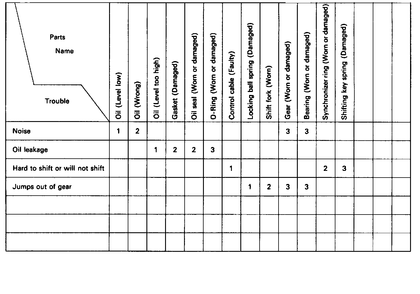 Use the table to help you find the cause of the problem. The numbers indicate the priority of the likely cause of the problem. Check each part in order. If necessary, replace these parts.