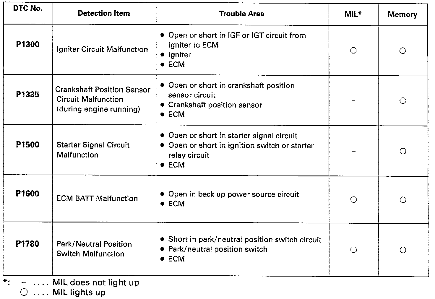 If a malfunction code is displayed during the DTC check in check mode, check the circuit for that code listed in the table above.