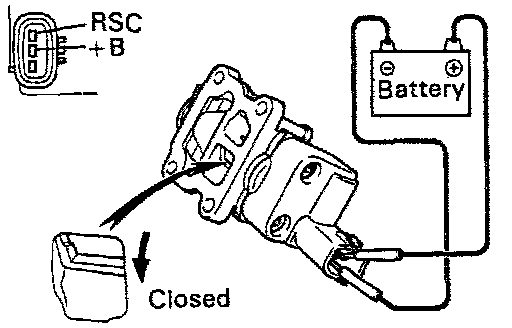 - Connect the positive (+) lead from the battery to terminal +B and negative (-) lead to terminal RSC, and check that the valve is closed.