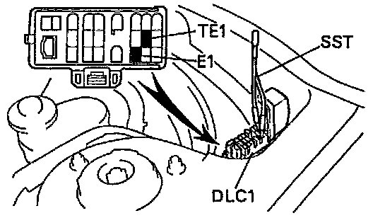 - Using SST, connect terminals TE1 and E1 of the DLC1.