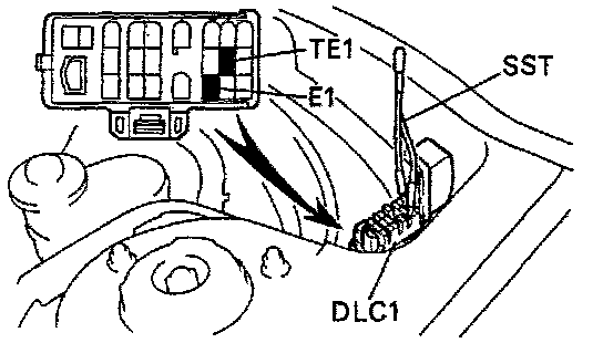 - Using SST, connect terminals TE1 and E1 of the data link connector 1. SST 09843-18020