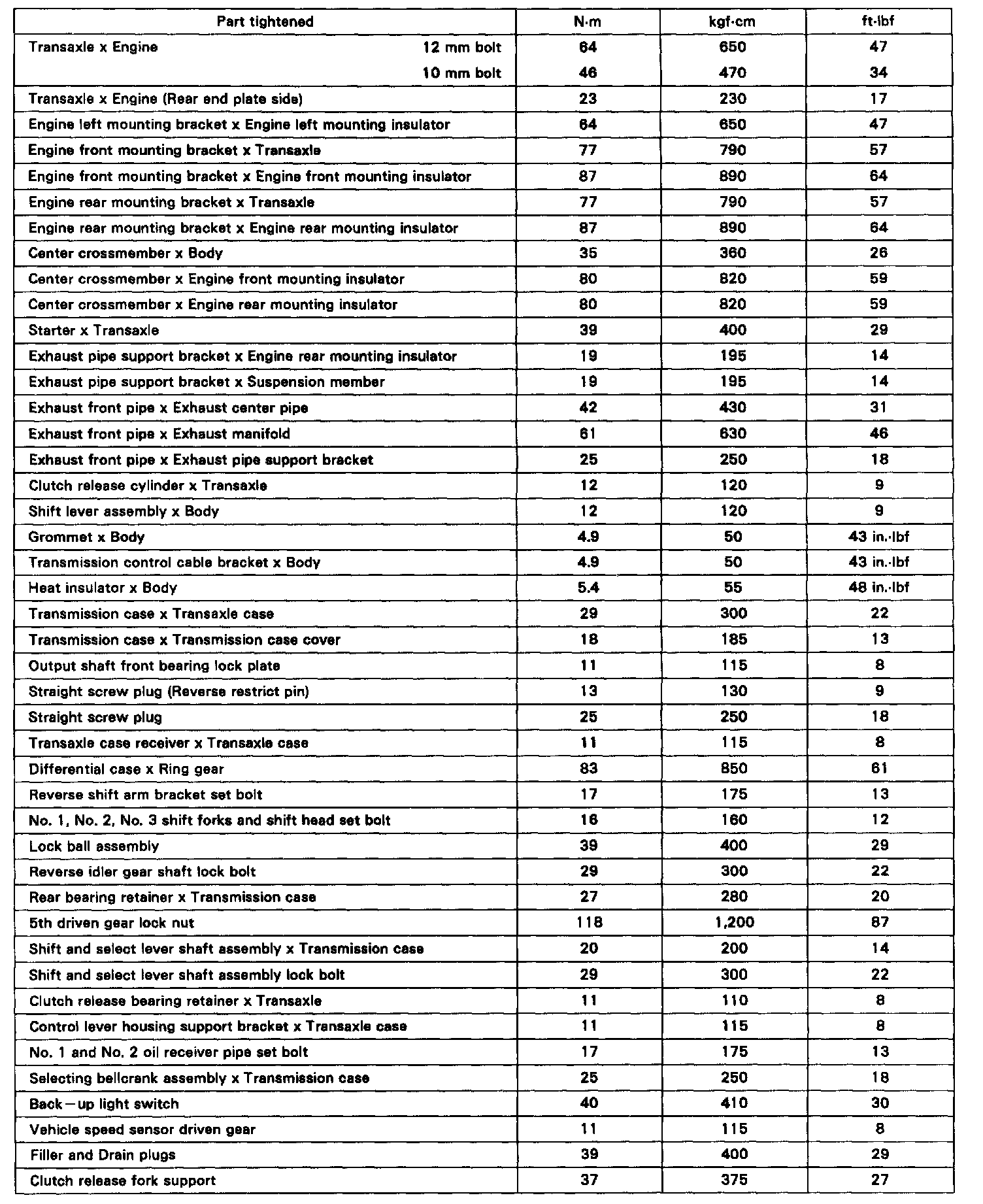 M/T Torque Data
