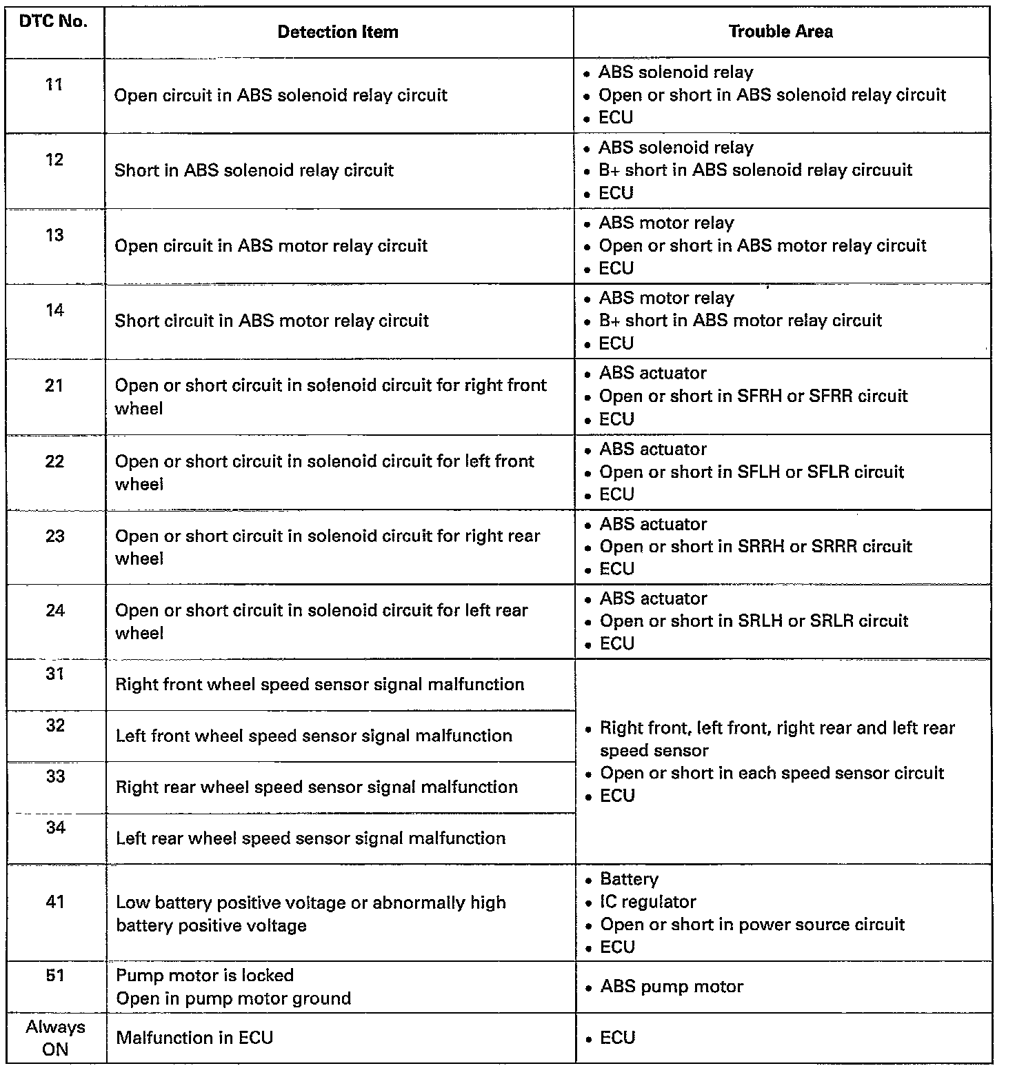 If a malfunction code is displayed during the DTC check 7 check the circuit listed for that code.