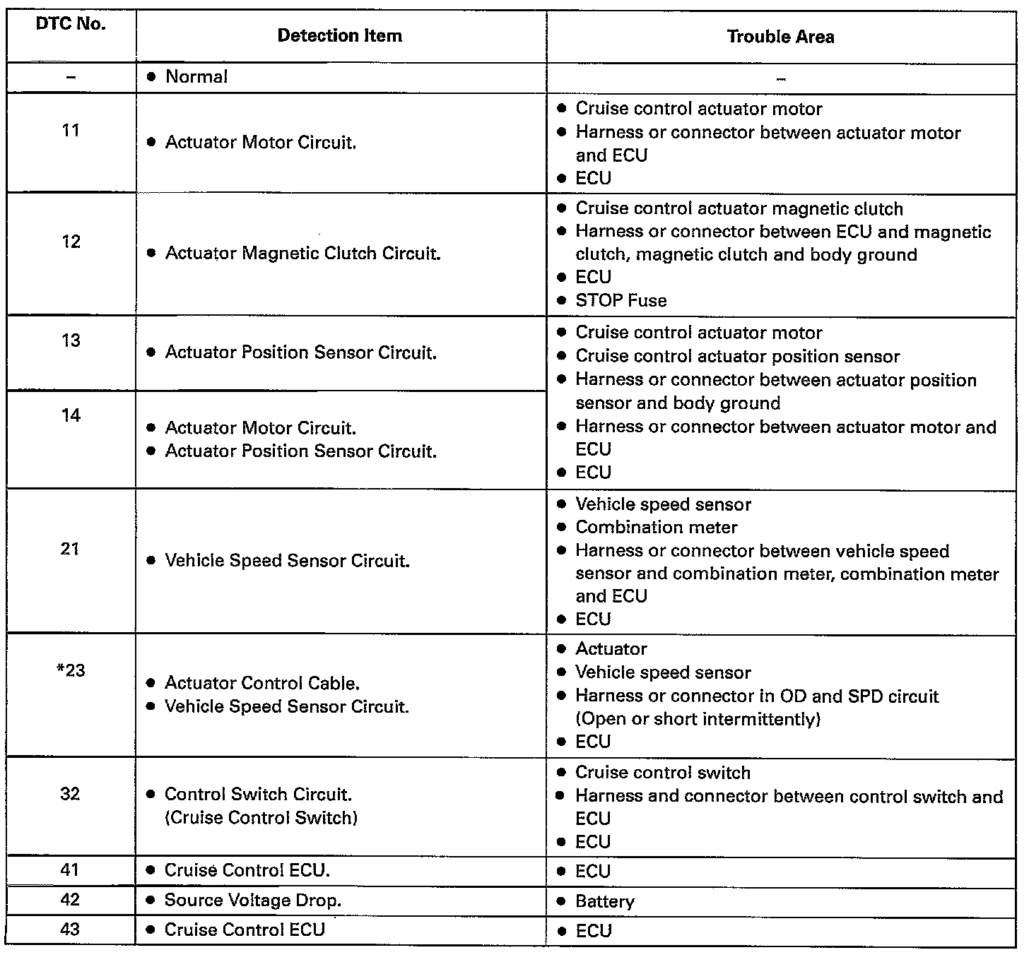 3. If the trouble still reappears even though there are no abnormalities in any of the other circuits, then check or replace the cruise control ECU as the last step. (*) When the vehicle speed decreases on uphill roads, the speed can be set again and driving continued. (This is not a malfunction.)