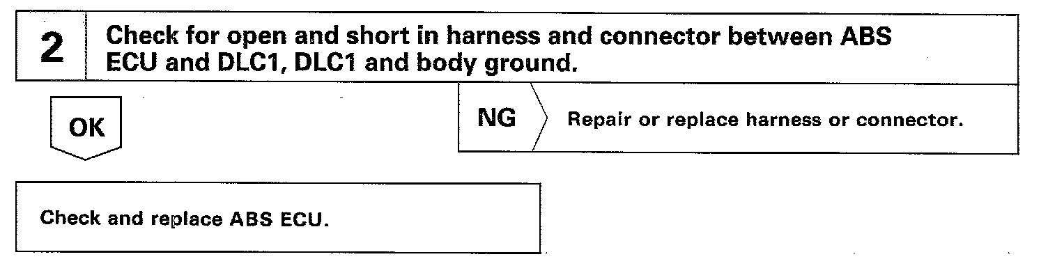 Connecting terminals Tc and E1 of the DLC1 causes the ECU to display the DTC by flashing the ABS warning light.
