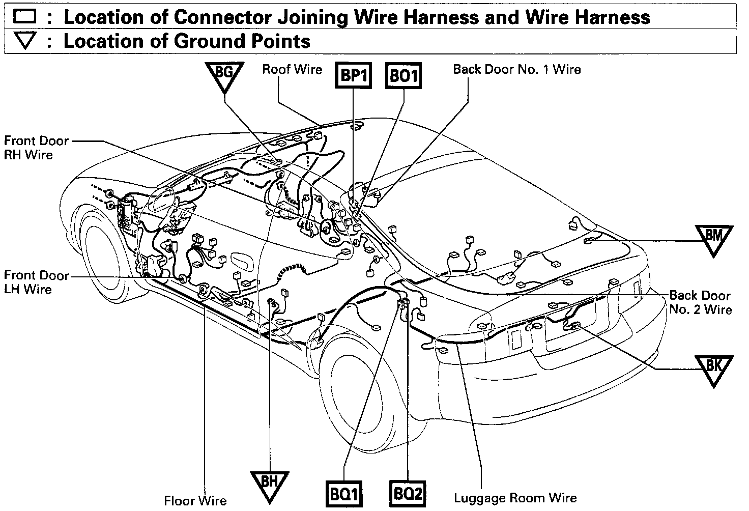 Location Of Connector Joining Wire Harness And Wire Harness, Ground Points: