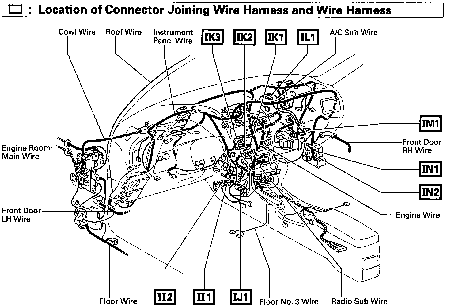 Location Of Connector Joining Wire Harness And Wire Harness: