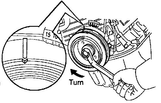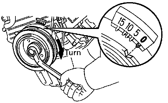 (b) Slowly turn the crankshaft pulley 2 revolutions from TDC to TDC.