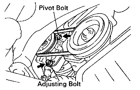 - Install the drive belt with the adjusting bolt and pivot bolt.