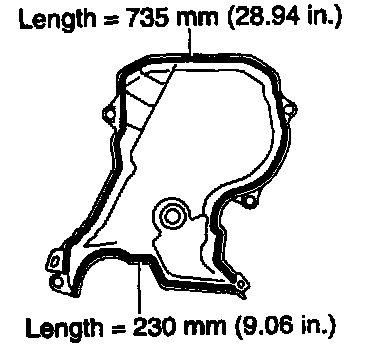 - Remove the backing paper from a new gasket and install the gasket evenly to the part of the timing belt cover shaded black in the illustration.