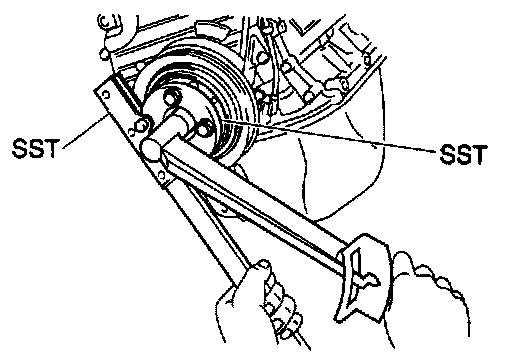 (b) Using SST (and bolt), install the pulley bolt.