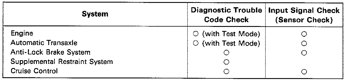 By using these check functions, the problem areas can be narrowed down quickly and troubleshooting can be performed effectively. Diagnostic functions are incorporated in the following systems in the TOYOTA CELICA.
