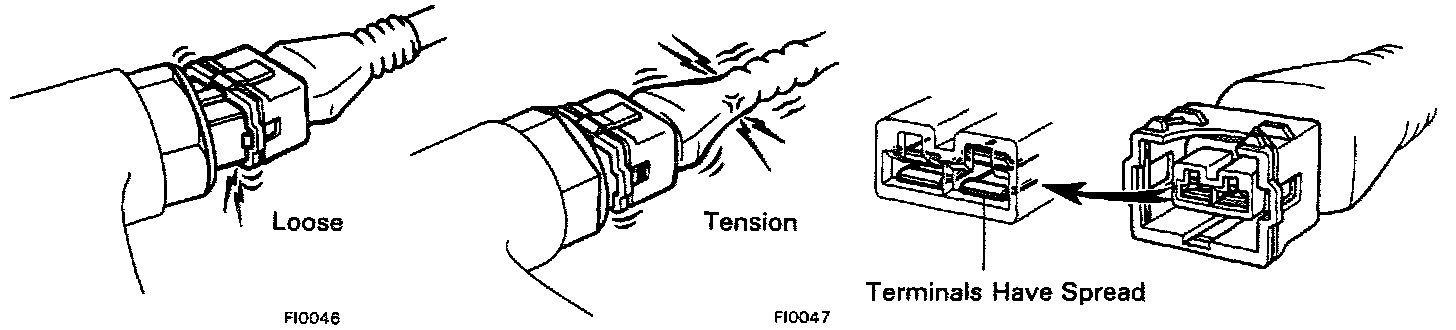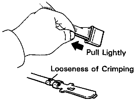 2. Faulty contact could be due to rusting of the connector terminals, to foreign materials entering terminals or a drop in the contact pressure between the male and female terminals of the connector. Simply disconnecting and reconnecting the connectors once changes the condition of the connection and may result in a return to normal operation.