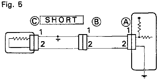 If the wire harness is ground shorted as in Fig. 5, locate the section by conducting a "continuity check with ground".