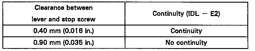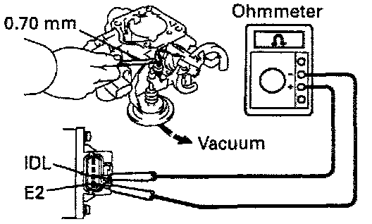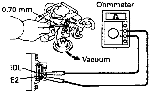 - Connect the test probe of an ohmmeter to the terminals IDL and E2 of the throttle position sensor.