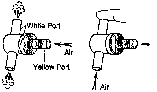 - Plug the white ports on one side, and check that air does not flow from the white port to the yellow port.