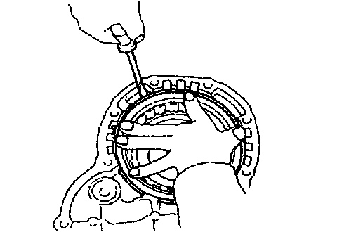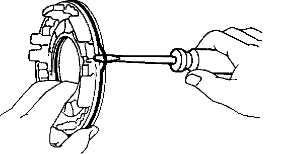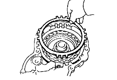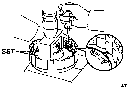 c. Install the snap ring with a screwdriver. Be sure end gap of snap ring is aligned with the groove of the clutch drum.
