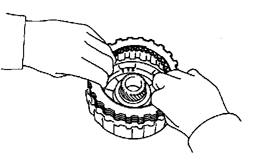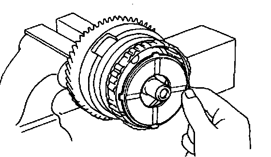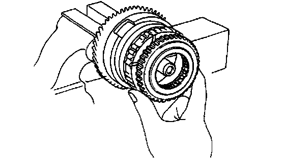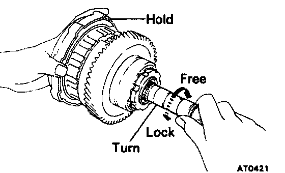b. Hold the overdrive direct clutch and turn the intermediate shaft. The shaft should turn freely clockwise and should lock counterclockwise.