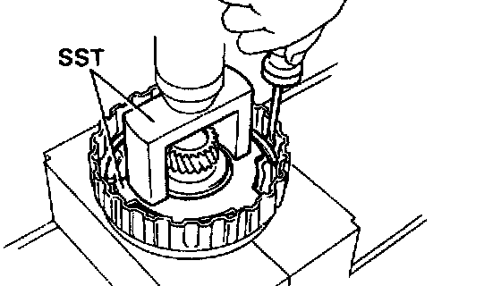 b. Place Special Service Tools (SST) on the spring retainer, and compress the spring with a shop press.